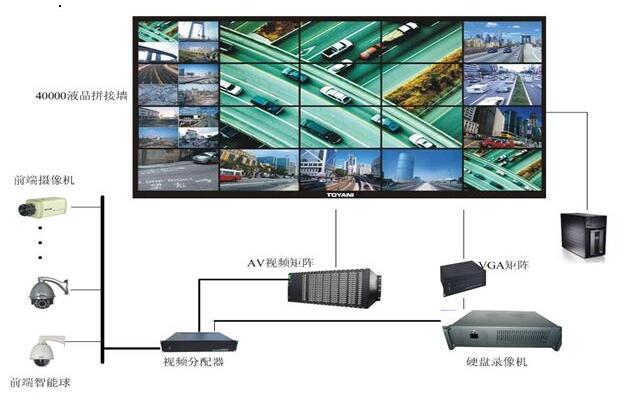 典型的電視監(jiān)控系統(tǒng)主要由前端監(jiān)視設(shè)備、傳輸設(shè)備、后端存儲(chǔ)、控制及顯示設(shè)備這五大部分組成,其中后端設(shè)備可進(jìn)一步分為中心控制設(shè)備和分控制設(shè)備。前、后端設(shè)備有多種構(gòu)成方式,它們之間的聯(lián)系(也可稱作傳輸系統(tǒng))可通過電纜、光纖、微波等多種方式來實(shí)現(xiàn)。